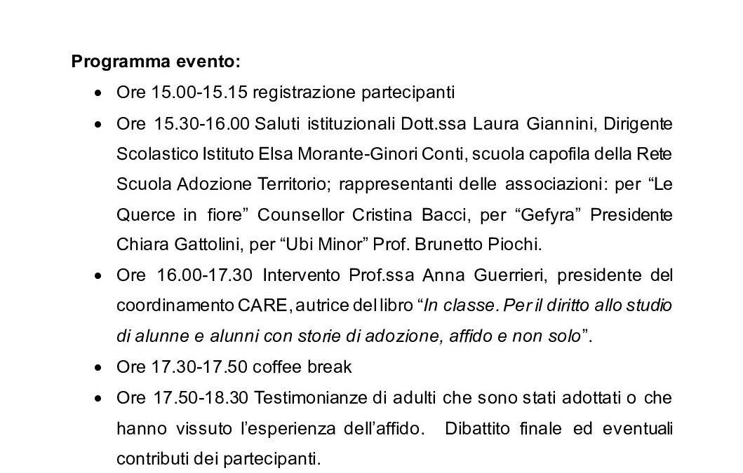 Coordinamento delle associazioni familiari adottive e affidatarie in REte. “Le querce in fiore” aderisce a CARE che è una associazione di associazioni.